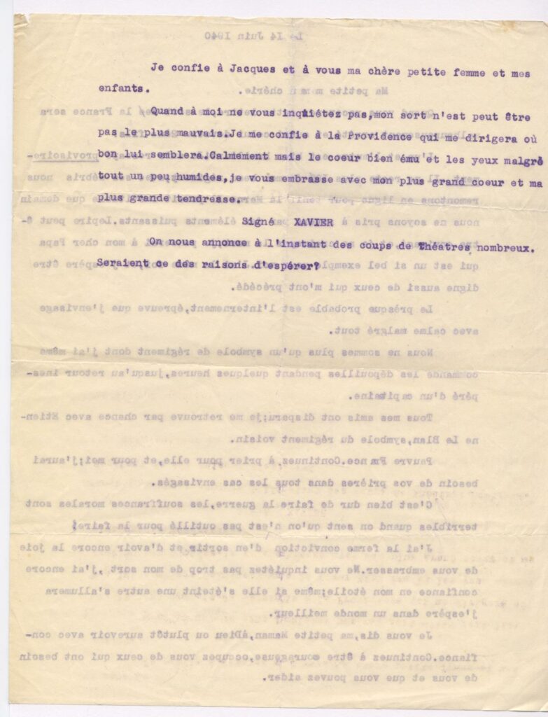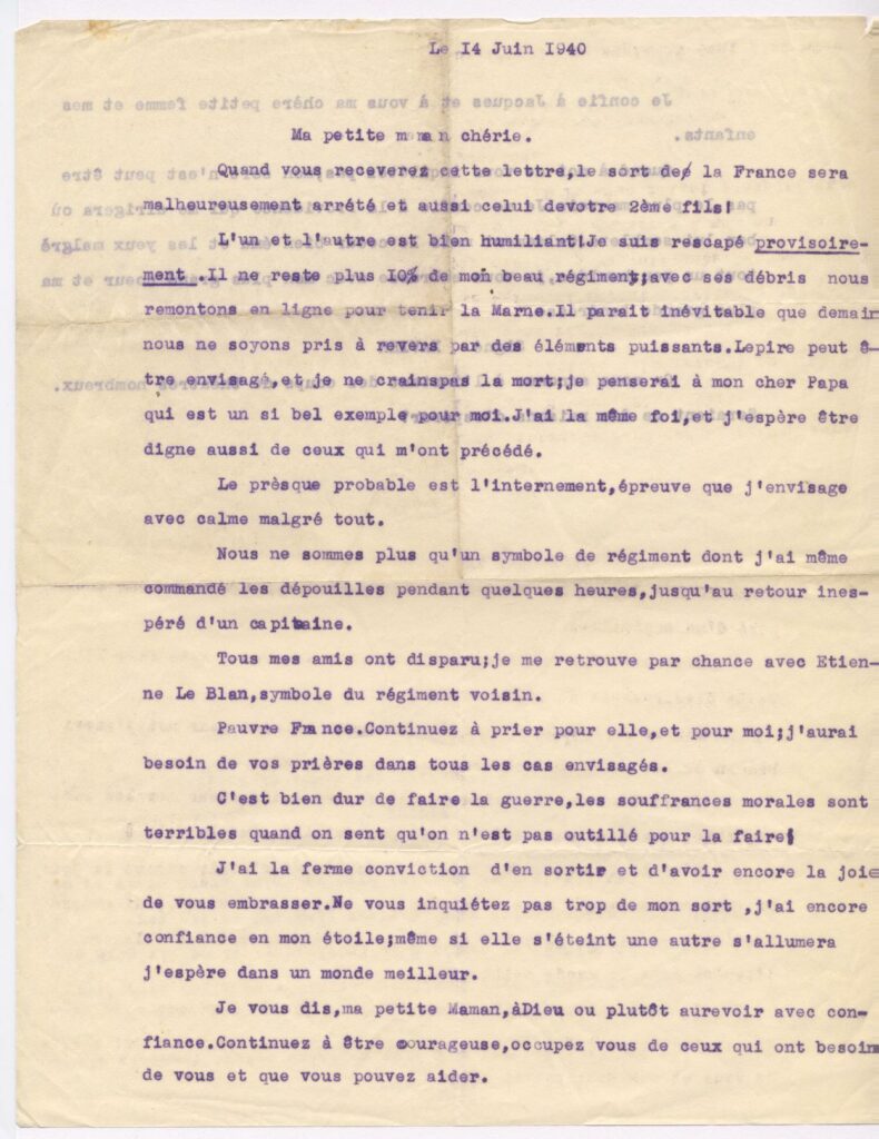 Quand vous recevrez cette lettre, le sort de la France sera scellé, malheureusement arrêté et aussi celui de votre 2ème fils.